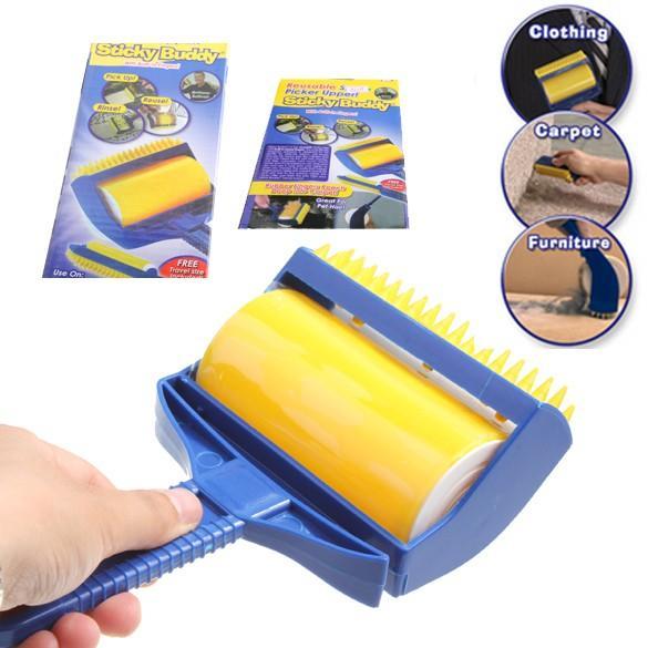 Sticky Buddy is a reusable sticky roller with built-in rubber fighters, reaching deep into carpet to pull dirt and pet hair to the surface.